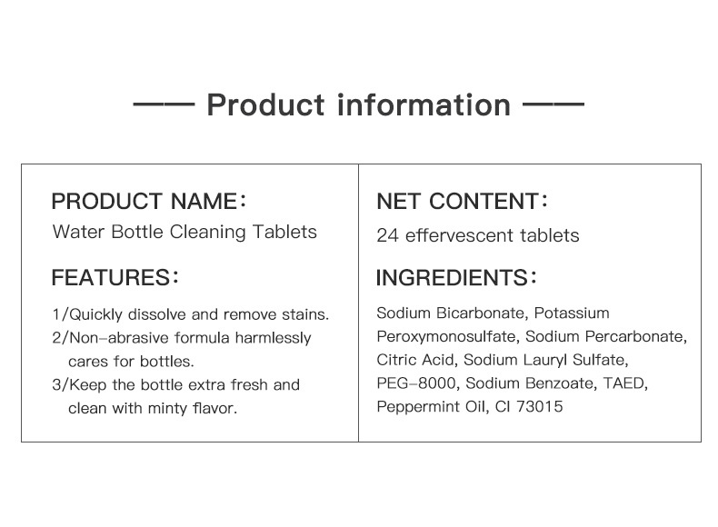 Simply drop a tablet into your bottle, add warm water, and let it soak for 15-30 minutes or longer for tough stains, then rinse.